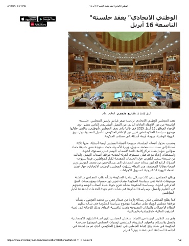 ﺎﮫﻟﻼﺧ ﺶﻗﺎﻨﻳ ،ﻲﺒظﻮﺑﺄﺑ ﺲﻠﺠﻤﻟا ﺮﻘﻤﺑ ﺪﻳاز ﺔﻋﺎﻗ ﻲﻓ 2025 ﻞﻳﺮﺑأ 16 ﻖﻓاﻮﻤﻟا ءﺎﻌﺑرﻷا
