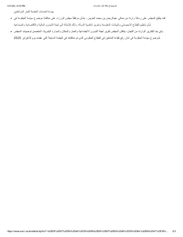 2025 رﯾارﺑﻓ 5 موﯾ تدﻘﻋ ﻲﺗﻟا ﺔﻌﺑﺎﺳﻟا ﺔﺳﻠﺟﻟا ﻲﻓ ﮫﺗﺷﻗﺎﻧﻣ مﺗ يذﻟا ﻲﻣوﻛﺣﻟا عﺎطﻘﻟا ﻲﻓ نﯾﻠﻣﺎﻌﻟا ةءﺎﻔﻛ ﻊﻓر نﺄﺷ ﻲﻓ ﺔﻣوﻛﺣﻟا ﺔﺳﺎﯾﺳ عوﺿوﻣﻟ.