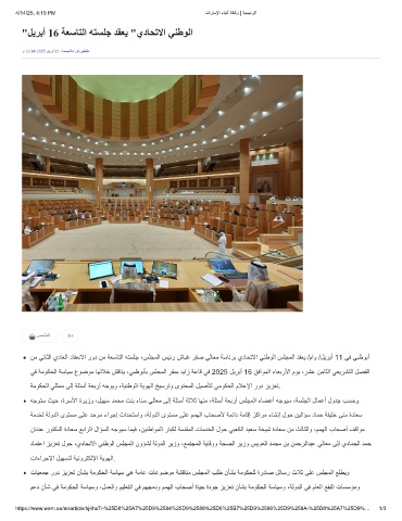 ﻲﻓ ﺔﻣوﻛﺣﻟا ﺔﺳﺎﯾﺳ عوﺿوﻣ ﺎﮭﻟﻼﺧ شﻗﺎﻧﯾ ،ﻲﺑظوﺑﺄﺑ سﻠﺟﻣﻟا رﻘﻣﺑ دﯾاز ﺔﻋﺎﻗ ﻲﻓ 2025 لﯾرﺑأ 16 ﻖﻓاوﻣﻟا ءﺎﻌﺑرﻷا موﯾ ،رﺷﻋ نﻣﺎﺛﻟا ﻲﻌﯾرﺷﺗﻟا لﺻﻔﻟا