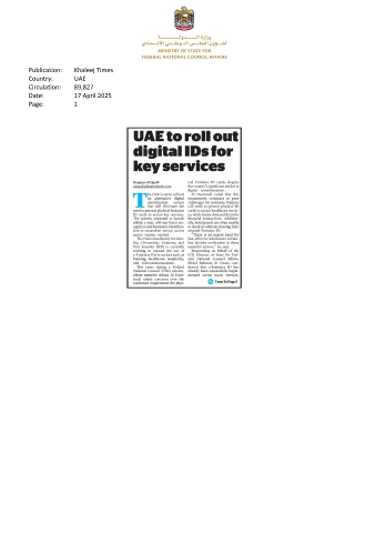 Publication: Khaleej Times Country: UAE Circulation: 89,827 Date: 17 April 2025 Page: 1