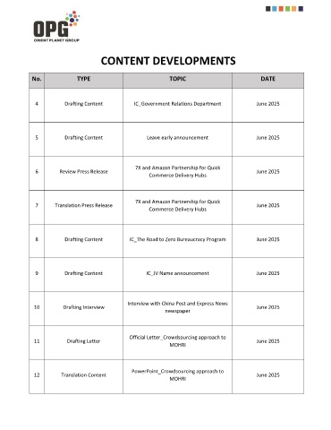 CONTENT DEVELOPMENTS