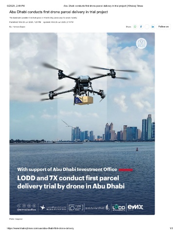 6/26/25, 2:48 PM Abu Dhabi conducts first drone parcel delivery in trial project | Khaleej Times