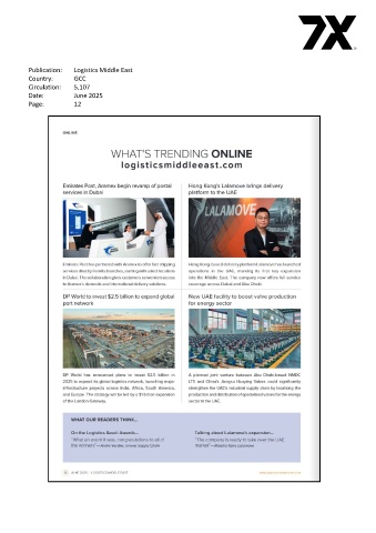 Publication: Logistics Middle East Country: GCC Circulation: 5,107 Date: June 2025 Page: 12