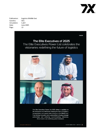Publication: Logistics Middle East Country: GCC Circulation: 5,107 Date: June 2025 Page: 13