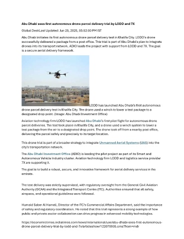 Abu Dhabi initiates its first autonomous drone parcel delivery test in Khalifa City. LODD's drone