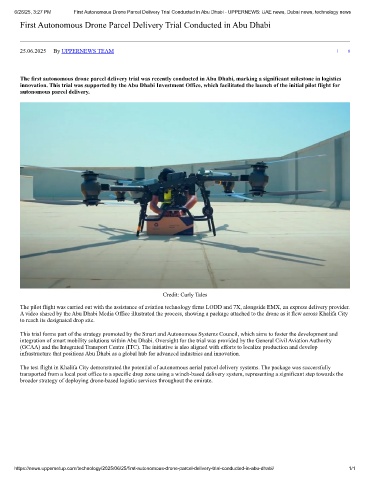 6/26/25, 3:27 PM First Autonomous Drone Parcel Delivery Trial Conducted in Abu Dhabi - UPPERNEWS: UAE news, Dubai news, technology news