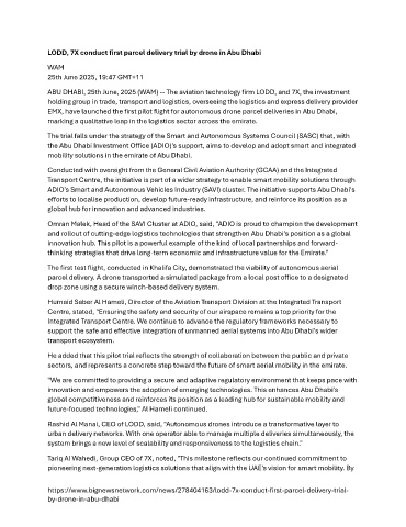 LODD, 7X conduct first parcel delivery trial by drone in Abu Dhabi