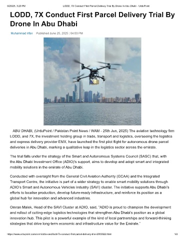 6/26/25, 3:29 PM LODD, 7X Conduct First Parcel Delivery Trial By Drone In Abu Dhabi - UrduPoint