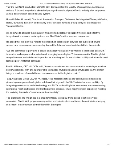 6/26/25, 3:29 PM LODD, 7X Conduct First Parcel Delivery Trial By Drone In Abu Dhabi - UrduPoint