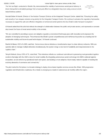 6/26/25, 3:18 PM 1st test flight for drone parcel delivery in Abu Dhabi