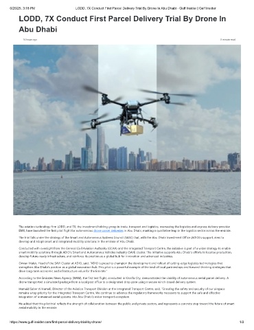6/26/25, 3:18 PM LODD, 7X Conduct First Parcel Delivery Trial By Drone In Abu Dhabi - Gulf Insider | Gulf Insider