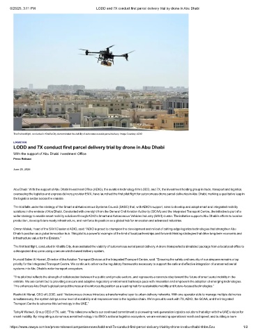 6/26/25, 3:11 PM LODD and 7X conduct first parcel delivery trial by drone in Abu Dhabi