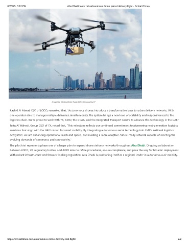 6/26/25, 3:12 PM Abu Dhabi tests 1st autonomous drone parcel delivery flight - Emirati Times