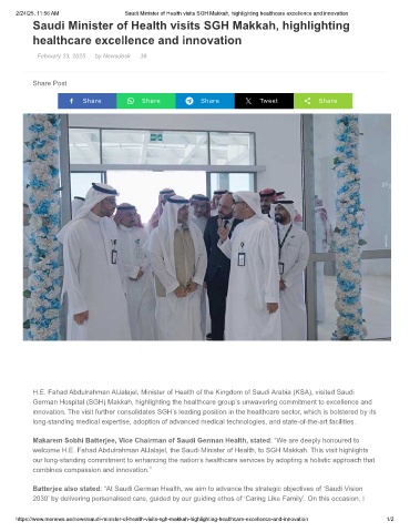 2/24/25, 11:56 AM Saudi Minister of Health visits SGH Makkah, highlighting healthcare excellence and innovation