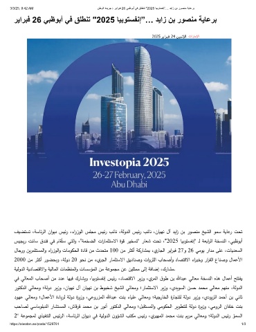 3/3/25, 9:42 AM نطوﻟا ةدﯾرﺟ › رﯾارﺑﻓ 26 ﻲﺑظوﺑأ ﻲﻓ ﻖﻠطﻧﺗ ″2025 ﺎﯾﺑوﺗﺳﻔﻧإ”… دﯾاز نﺑ روﺻﻧﻣ ﺔﯾﺎﻋرﺑ
