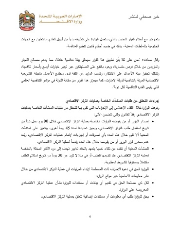 رﺎﺠﺘﻟا ﺢﻟﺎﺼﻤ مﻋدﯿ ﺎﻤﻤ ،ﺔﻟدﺎﻋ ﺔﯿﺴﻓﺎﻨﺘ ﺔﺌﯿﺒ قﻠﺨﯿﺴ رارﻘﻟا اذﻫ قﯿﺒطﺘ نﺄﺒ ﺔﻘﺜ ﻰﻠﻋ نﺤﻨ" :ﻪﺘدﺎﻌﺴ لﺎﻗو