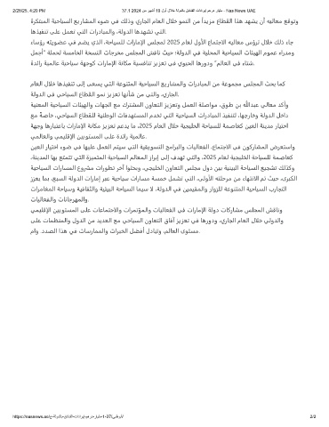 ﺔﻬﺟو ﺎﻫرﺎﺒﺘﻋﺎﺑ تارﺎﻣإلا ﺔﻧﺎﻜﻣ ﺰﻳﺰﻌﺗ ﻢﻋﺪﻳ ﺎﻣ ،2025 مﺎﻌﻟا لالﺧ ﺔﻴﺠﻴﻠﺨﻟا ﺔﺣﺎﻴﺴﻠﻟ ﺔﻤﺻﺎﻌﻛ ﻦﻴﻌﻟا ﺔﻨﻳﺪﻣ رﺎﻴﺘﺧا