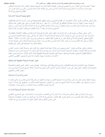 ﺔﯿﺣﺎﯿﺴﻟا تﺎﻤﻈﻨﻤﻟاو لوﺪﻟا ﻦﻣ ﺪﯾﺪﻌﻟا ﻊﻣ تارﺎﻣﻹا ﺔﻟوﺪﻟ ﻲﺣﺎﯿﺴﻟا نوﺎﻌﺘﻟا قﺎﻓآ ﺰﯾﺰﻌﺗ ﻲﻓ ﺎھرودو ،يرﺎﺠﻟا مﺎﻌﻟا لﻼﺧ ﻲﻟوﺪﻟاو
