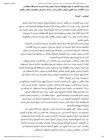2/28/25, 4:51 PM قاوﺳﻷا ﻰﻠﻋ ﺔﯾﻣوﻛﺣﻟا ﺔﺑﺎﻗرﻟا زﯾزﻌﺗﻟ "ﺔﯾﺳﺎﺳﻷا ﻊﻠﺳﻟا رﺎﻌﺳأ ﺔﺑﻗارﻣﻟ ﺔﯾﻧطوﻟا ﺔﺻﻧﻣﻟا" ﻖﻠطُﺗ دﺎﺻﺗﻗﻻا ةرازو