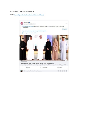 Publication: Facebook – Sharjah 24 ُ Link: #ةيساسلأا علسلا راعسأ ةبقارلم ةينطولا ةصنلما قلطت داصتقلاا_ةرازو