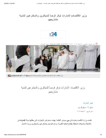 تارﺎﻣﻹا رﺎﺑﺧا - Feb 20, 2025 12:47:03 | ١٢:٤٧ - ٢٠٢٥ طﺎﺑﺷ ٢٠ سﯾﻣﺧﻟا :ﺦﯾرﺎﺗﺑ رﺷﻧ
