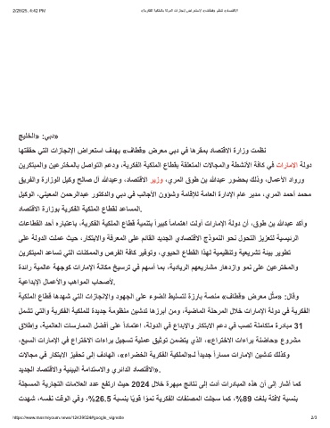 2/28/25, 4:42 PM «ﺔﯾرﻛﻔﻟا ﺔﯾﻛﻠﻣﻟﺎﺑ ﺔﻟودﻟا تازﺎﺟﻧإ ضارﻌﺗﺳﻻ «فﺎطﻗ» مظﻧﺗ «دﺎﺻﺗﻗﻻا