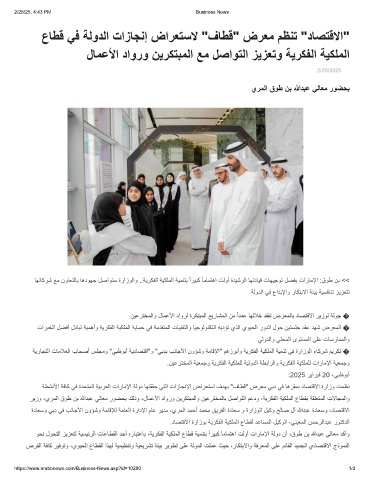 ﺔﯾرﺎﺟﺗﻟا تﺎﻣﻼﻌﻟا بﺎﺣﺻأ سﻠﺟﻣو "ﻲﺑظوﺑأ ﺔﯾدﺎﺻﺗﻗا"و "ﻲﺑدﺑ بﻧﺎﺟﻷا نوؤﺷو ﺔﻣﺎﻗﻹا" مھزرﺑأو ﺔﯾرﻛﻔﻟا ﺔﯾﻛﻠﻣﻟا ﺔﯾﻣﻧﺗ ﻲﻓ ةرازوﻟا ءﺎﻛرﺷ مﯾرﻛﺗ �