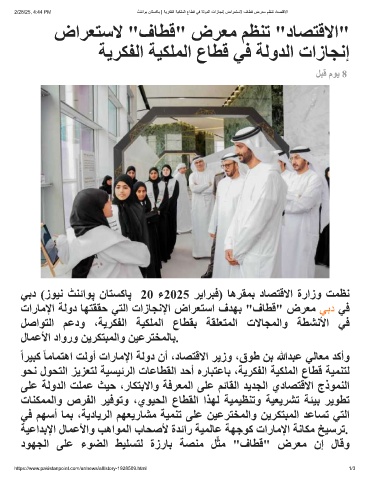 2/28/25, 4:44 PM ٹﻧﺋاوﺑ نﺎﺗﺳﮐﺎﺑ | ﺔﯾرﻛﻔﻟا ﺔﯾﻛﻠﻣﻟا عﺎطﻗ ﻲﻓ ﺔﻟودﻟا تازﺎﺟﻧإ ضارﻌﺗﺳﻻ فﺎطﻗ ضرﻌﻣ مظﻧﺗ دﺎﺻﺗﻗﻻا