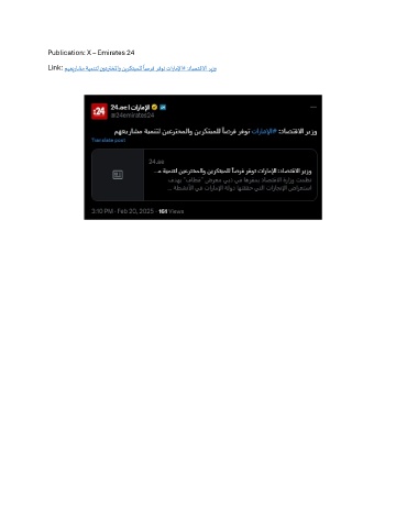 Publication: X – Emirates 24 ً Link: مهعيراشم ةيمنتل نيعرتخلماو نيركتبملل اصرف رفوت تاراملإا# :داصتقلاا ريزو