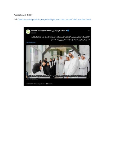 Publication: X - SSICT Link: " لامعلأا داورو نيركتبلما عم لصاوتلا زيزعتو ةيركفلا ةيكللما عاطق يف ةلودلا تازاجنإ ضارعتسلا "فاطق" ضرعم مظنت "داصتقلاا