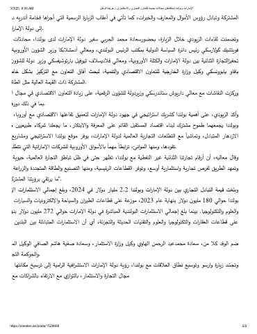 تﺎﺛدﺎحﻣ ،ادنﻟوﺑ ىدﻟ تارﺎﻣﻹا ﺔﻟود ريﻔﺳ ﻲبرحﻟا دمحﻣ ةدﺎﻌﺳروضحب ،ةرﺎيزﻟا لﻼﺧ يدويزﻟا تاءﺎﻘﻟ تنمضﺗو