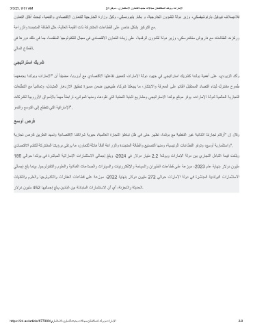 ﺎﻣﮭﻌﻣﺟﯾ ادﻧﻟوﺑو تارﺎﻣﻹا" نأ ً ﺎﻔﯾﺿﻣ ،ﺎﺑوروأ ﻊﻣ يدﺎﺻﺗﻗﻻا ﺎﮭﻠﻋﺎﻔﺗ ﻖﯾﻣﻌﺗﻟ تارﺎﻣﻹا ﺔﻟود دوﮭﺟ ﻲﻓ ﻲﺟﯾﺗارﺗﺳا كﯾرﺷﻛ ادﻧﻟوﺑ ﺔﯾﻣھأ ﻰﻠﻋ ،يدوﯾزﻟا دﻛأو