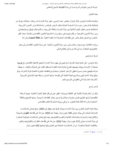 ،ﺎﺑوروأ ﻊﻣ يدﺎﺻﺗﻗﻻا ﺎﮭﻠﻋﺎﻔﺗ ﻖﯾﻣﻌﺗﻟ تارﺎﻣﻹا ﺔﻟود دوﮭﺟ ﻲﻓ ﻲﺟﯾﺗارﺗﺳا كﯾرﺷﻛ ادﻧﻟوﺑ ﺔﯾﻣھأ ﻰﻠﻋ ،يدوﯾزﻟا دﻛأو