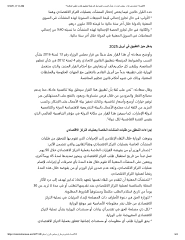 3/3/25, 9:16 AM "ﺔﺳﻓﺎﻧﻣﻟا مﯾظﻧﺗ نوﻧﺎﻗ ﻖﯾﺑطﺗﺑ ﺔطﺑﺗرﻣﻟا طﺑاوﺿﻟاو بﺳﻧﻟا نﺄﺷﺑ ءارزوﻟا سﻠﺟﻣ رارﻗ ضرﻌﺗﺳﺗ "دﺎﺻﺗﻗﻻا
