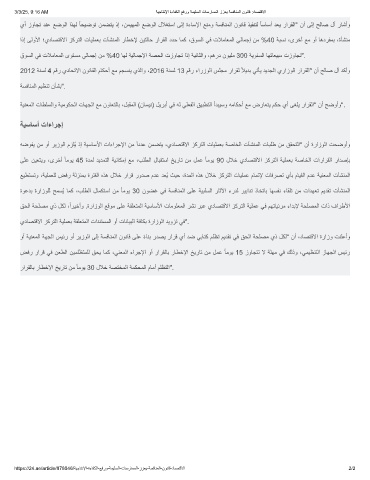 ﮫﺿوﻔﯾ نﻣ وأ رﯾزوﻟا مزﻠُﯾ ذإ ﺔﯾﺳﺎﺳﻷا تاءارﺟﻹا نﻣ ًاددﻋ نﻣﺿﺗﯾ ،يدﺎﺻﺗﻗﻻا زﻛرﺗﻟا تﺎﯾﻠﻣﻌﺑ ﺔﺻﺎﺧﻟا تﺂﺷﻧﻣﻟا تﺎﺑﻠط نﻣ ﻖﻘﺣﺗﻟا" نأ ةرازوﻟا تﺣﺿوأو