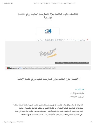 3/3/25, 9:16 AM موﯾ لﻛ ﻊﻗوﻣ - تارﺎﻣﻹا رﺎﺑﺧا | ﺔﯾﺟﺎﺗﻧﻹا ةءﺎﻔﻛﻟا ﻊﻓرو ﺔﻣﯾﻠﺳﻟا تﺎﺳرﺎﻣﻣﻟا ززﻌﯾ ﺔﺳﻓﺎﻧﻣﻟا نوﻧﺎﻗ :دﺎﺻﺗﻗﻻا