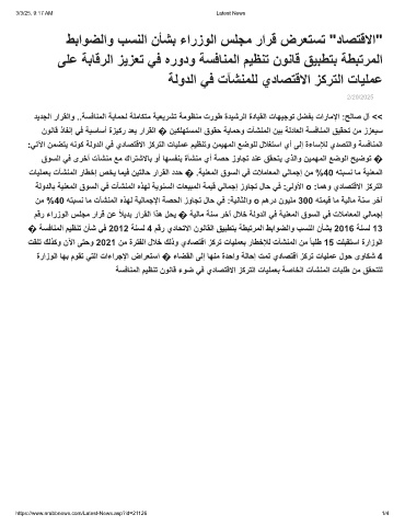 دﯾدﺟﻟا رارﻘﻟاو ..ﺔﺳﻓﺎﻧﻣﻟا ﺔﯾﺎﻣﺣﻟ ﺔﻠﻣﺎﻛﺗﻣ ﺔﯾﻌﯾرﺷﺗ ﺔﻣوظﻧﻣ تروط ةدﯾﺷرﻟا ةدﺎﯾﻘﻟا تﺎﮭﯾﺟوﺗ لﺿﻔﺑ تارﺎﻣﻹا :ﺢﻟﺎﺻ لآ <<