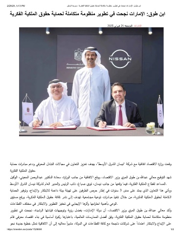2/28/25, 5:13 PM نطوﻟا ةدﯾرﺟ › ﺔﯾرﻛﻔﻟا ﺔﯾﻛﻠﻣﻟا قوﻘﺣ ﺔﯾﺎﻣﺣﻟ ﺔﻠﻣﺎﻛﺗﻣ ﺔﻣوظﻧﻣ رﯾوطﺗ ﻲﻓ تﺣﺟﻧ تارﺎﻣﻹا :قوط نﺑا