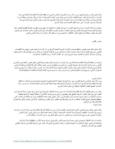 امك ،صاخلا عاطقلل ةحاتملا صرفلاب نمؤت يهف ،تارامثتسلااو ةراجتلا يف اميس لا ،ىدملا ةديعب ةيؤر امود تاراملإا ةلودل نأ فاضأو