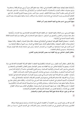 ﺎﻴﻧاﺮﻛوأو تارﺎﻣﻹا ﺔﻟود ﻦﻴﺑ ﺔﻠﻣﺎﺸﻟا ﺔﻳدﺎﺼﺘﻗﻻا ﺔﻛاﺮﺸﻟا ﺔﻴﻗﺎﻔﺗا نإ» :ﺔﻴﺘﺤﺘﻟا ﺔﻴﻨﺒﻟاو ﺔﻗﺎﻄﻟا ﺮﻳزو ،ﻋورﺰﻤﻟا ﻞﻴﻬﺳ