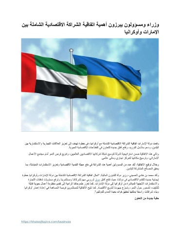 ةوطخ ايناركوأو تاراملإا ةلود نيب ةلماشلا ةيداصتقلاا ةكارشلا ةيقافتا لثمت : “ ةيلاملا نوؤشلل ةلود ريزو ،ينيسحلا يداه نب دمحم دكأو