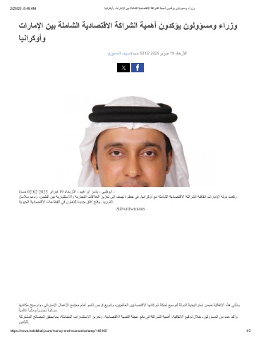 2/28/25, 8:48 AM ﺎﯾﻧارﻛوأو تارﺎﻣﻹا نﯾﺑ ﺔﻠﻣﺎﺷﻟا ﺔﯾدﺎﺻﺗﻗﻻا ﺔﻛارﺷﻟا ﺔﯾﻣھأ نودﻛؤﯾ نوﻟوؤﺳﻣو ءارزو