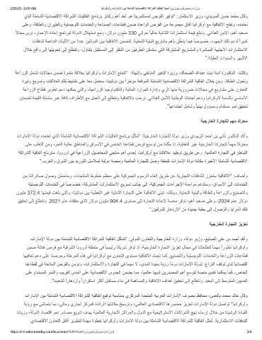 2/28/25, 9:09 AM ﺎﯾﻧارﻛوأو تارﺎﻣﻹا نﯾﺑ ﺔﻠﻣﺎﺷﻟا ﺔﯾدﺎﺻﺗﻗﻻا ﺔﻛارﺷﻟا ﺔﯾﻗﺎﻔﺗا ﺔﯾﻣھأ نوزرﺑﯾ نوﻟوؤﺳﻣو ءارزو