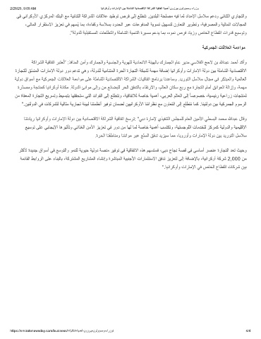 2/28/25, 9:09 AM ﺎﯾﻧارﻛوأو تارﺎﻣﻹا نﯾﺑ ﺔﻠﻣﺎﺷﻟا ﺔﯾدﺎﺻﺗﻗﻻا ﺔﻛارﺷﻟا ﺔﯾﻗﺎﻔﺗا ﺔﯾﻣھأ نوزرﺑﯾ نوﻟوؤﺳﻣو ءارزو