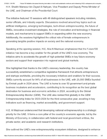 3/19/25, 1:04 PM Future100 initiative discusses fostering innovation in tech and sustainable ventures and enhancing UAE's entrepreneurial ecosyste…