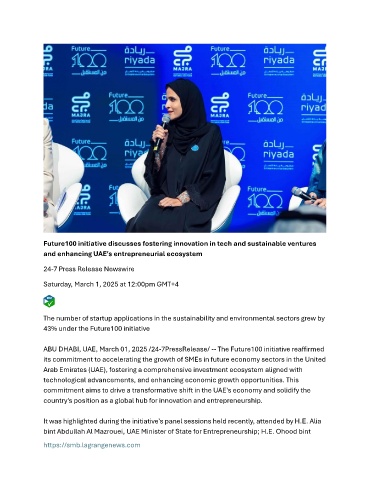 ABU DHABI, UAE, March 01, 2025 /24-7PressRelease/ -- The Future100 initiative reaffirmed