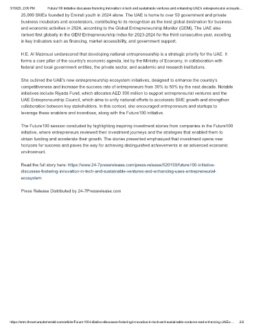 3/19/25, 2:00 PM Future100 initiative discusses fostering innovation in tech and sustainable ventures and enhancing UAE's entrepreneurial ecosyste…