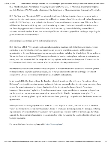 3/20/25, 1:22 PM Fourth edition of Investopia kicks off in Abu Dhabi defining the global investment landscape and modern financing trends in new ec…