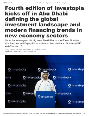 3/20/25, 1:43 PM Fourth edition of Investopia kicks off in Abu Dhabi defining the -