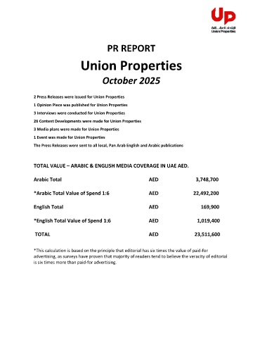 TOTAL VALUE – ARABIC & ENGLISH MEDIA COVERAGE IN UAE AED.